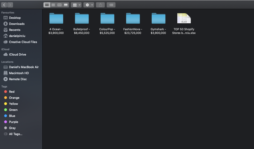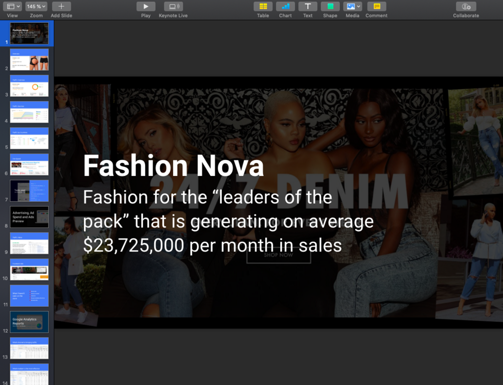 You will receive a zip archive containing 5 presentations (PPTX) + 1 excel file with the Top 50 Shopify Stores based on their Average sales per month.
